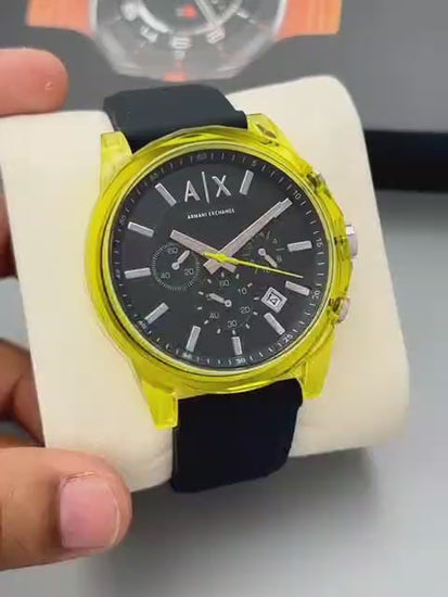 Armani Exchange Luxury Wrist Watch - Case Neon Yellow Dial and Strap Black.