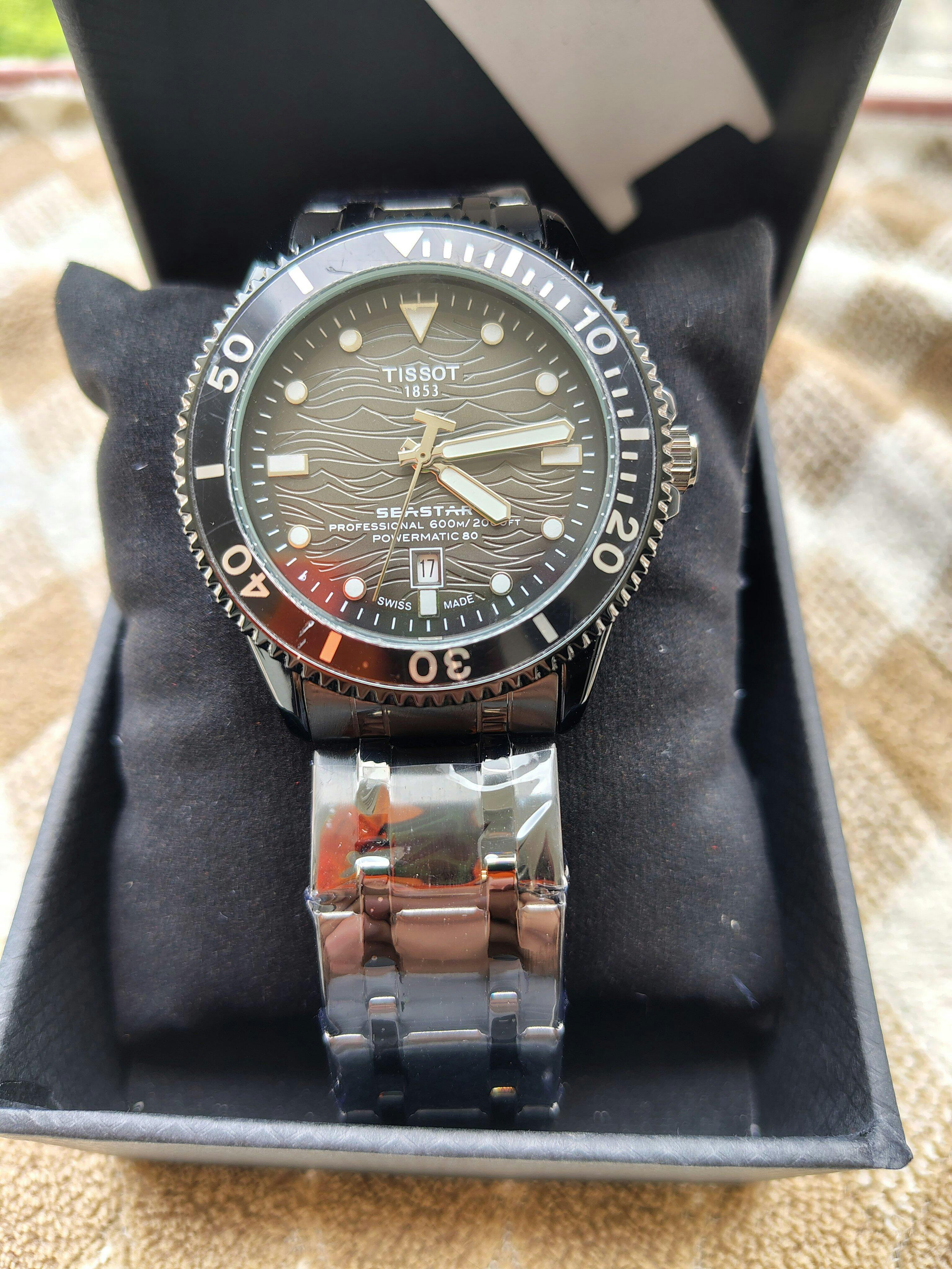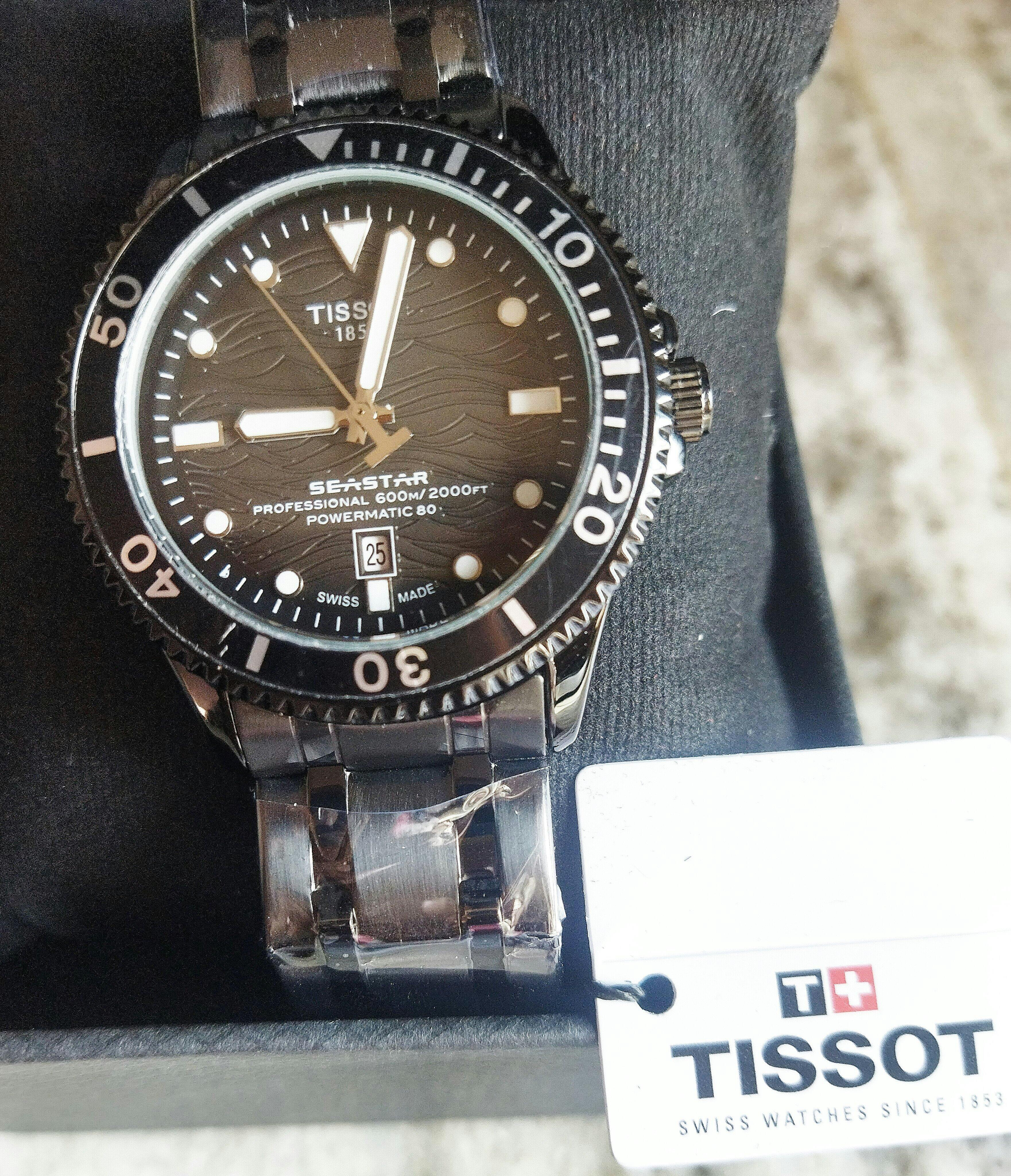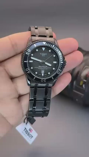 The Tissot Seastar is a sophisticated timepiece that combines precision, performance, and elegant design. Engineered for aquatic adventure, it features robust water resistance up to 300 meters, a unidirectional rotating bezel, and luminous markers for optimal readability underwater. The Swiss automatic or quartz movement ensures dependable accuracy, while its stainless steel case and sapphire crystal provide lasting durability. With a sporty yet refined aesthetic, the Seastar transitions seamlessly from deep-sea diving to everyday wear. This model reflects Tissot’s commitment to innovation, quality craftsmanship, and timeless style, making it an ideal choice for those who value both function and elegance.